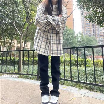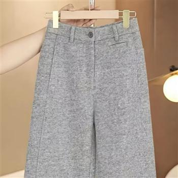YF6350-(2色入内)冬季毛呢加厚保暖系扣高腰直筒坠地感复古设计休闲裤