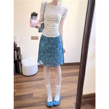 YF6395-图片色优雅时尚收腹显瘦性感开叉中长款碎花设计韩版个性雪纺半身裙